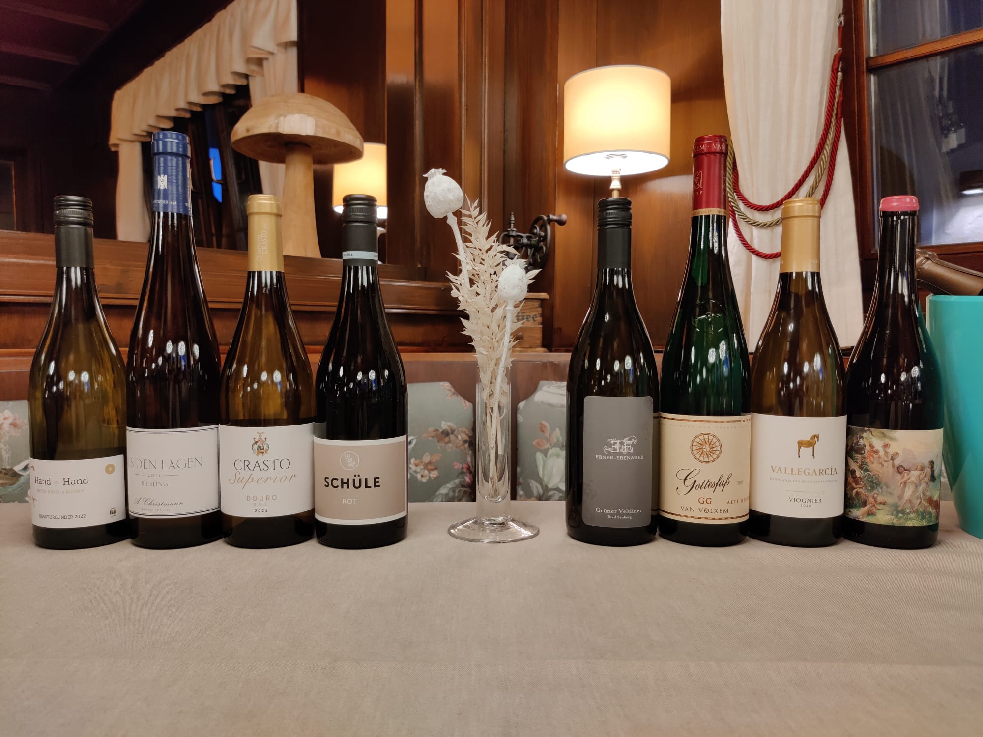 Bei der Weinbegleitung gab es einmal 2022 Hand in Hand, Grauburgunder, trocken vom Weinprojekt Mayer-Näkel & Klumpp (https://www.meyer-naekel.de/) aus Bruchsal (Baden) und in der Exklusivbegleitung einen 2020 Ried Sauberg Grüner Veltliner Reserve vom Weingut Ebner-Ebenauer (https://ebner-ebenauer.at/) aus Poysdorf (Österreich) [mehr dazu im Podcast-Beitrag, der demnächst erscheinen wird]