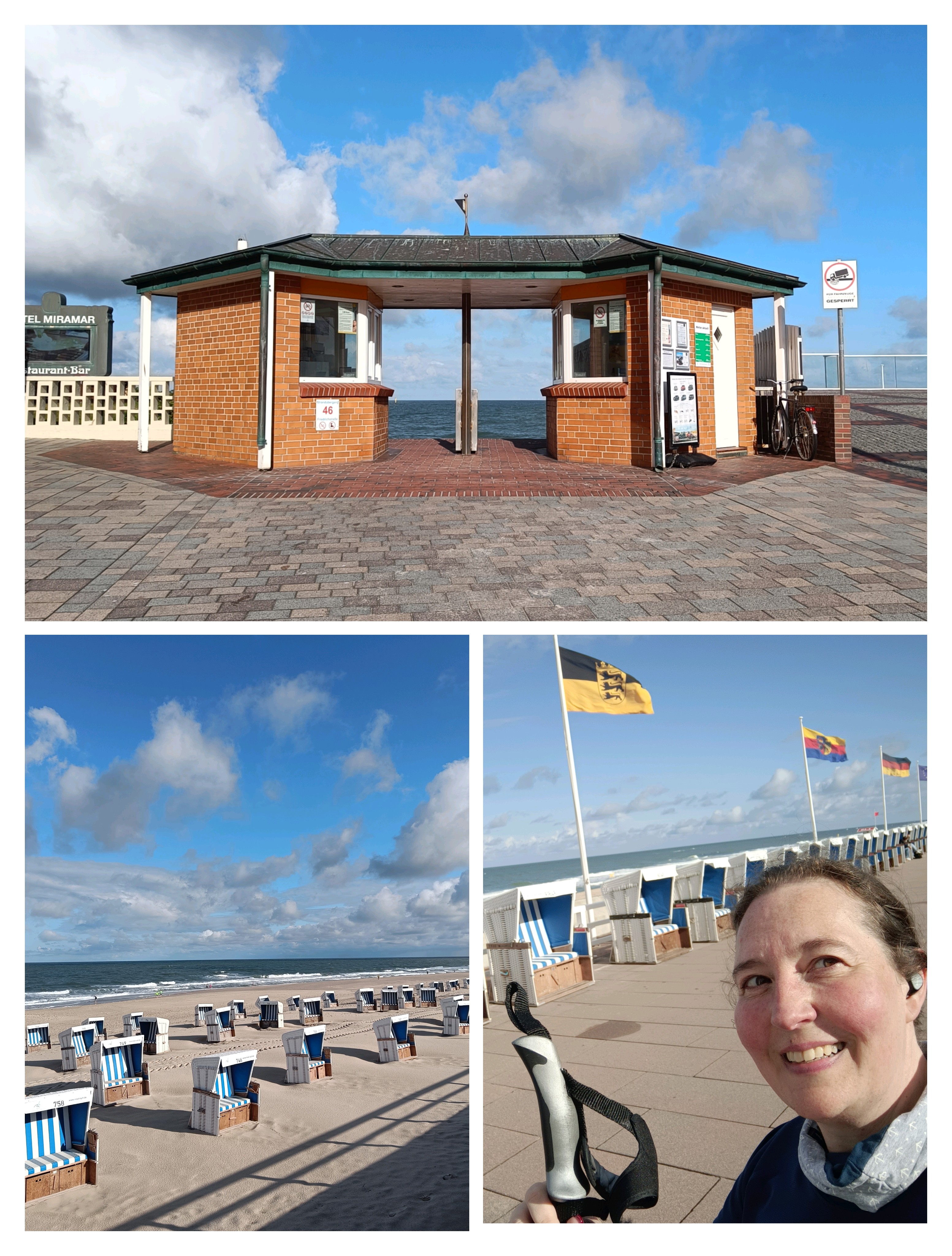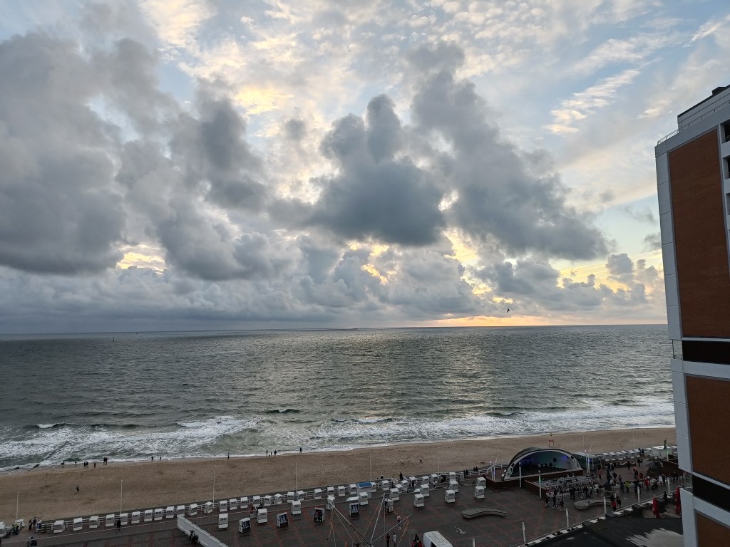 Das war doch gestern ein ganz versöhnlicher Einstieg nach diesem kleinen Sturmintermezzo am Mittwoch. Bei angenehmen Temperaturen, leichtem Wind und Sonnenschein hat es mich – wie viele andere auch – an die Promenade bzw. den Strand gezogen am frühen Morgen, um eine Runde Sport zu machen. Die einen waren bereits im Wasser unterwegs – schwimmend oder surfend, die meisten aber joggend oder wie ich nordicwalkend. Schön, wenn man so weit im Norden dann plötzlich „The Länd“ entdeckt an den Flaggenmasten. 😊