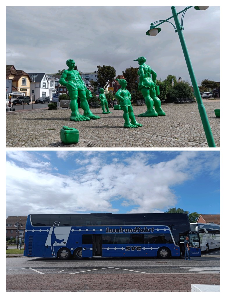 Relativ spontan ging es dann auf eine knapp 3-stündige Bustour über die Insel mit dem Start in Westerland und durch fast alle Wetterzonen 😉. Über „Get your Guide“ (https://www.getyourguide.de/) habe ich schon des Öfteren tolle Ausflüge und Erlebnisse gefunden – schaut gerne mal rein, wenn ihr irgendwo seid und lasst euch inspirieren. Mit Busfahrer Uwe – einem echten Sylter, der sogar noch hier geboren wurde, was inzwischen leider nicht mehr möglich ist, da die Geburtenstation bzw. der Kreissaal auf das Festland verlegt worden sind seit einigen Jahren – ging es los vom ZOB Westerland nach List, zum ersten Halt. Zwei Erkenntnisse gab es gleich auf dieser ersten Strecke – am häufigsten zu sehen auf der Insel ist der Syltkäfer – aka ein Porsche 911 – und die Möwen am Lister Hafen sind perfekt organisiert 😉. Ich konnte mein Bratheringsbrötchen vom Gosch erfolgreich verteidigen – Carsten war einen Hauch zu langsam und musste ein halbes Stremellachsbrötchen dem gierigen Schlund der Möwe überlassen, die eine Sekunde Unaufmerksamkeit gnadenlos ausnutzte.